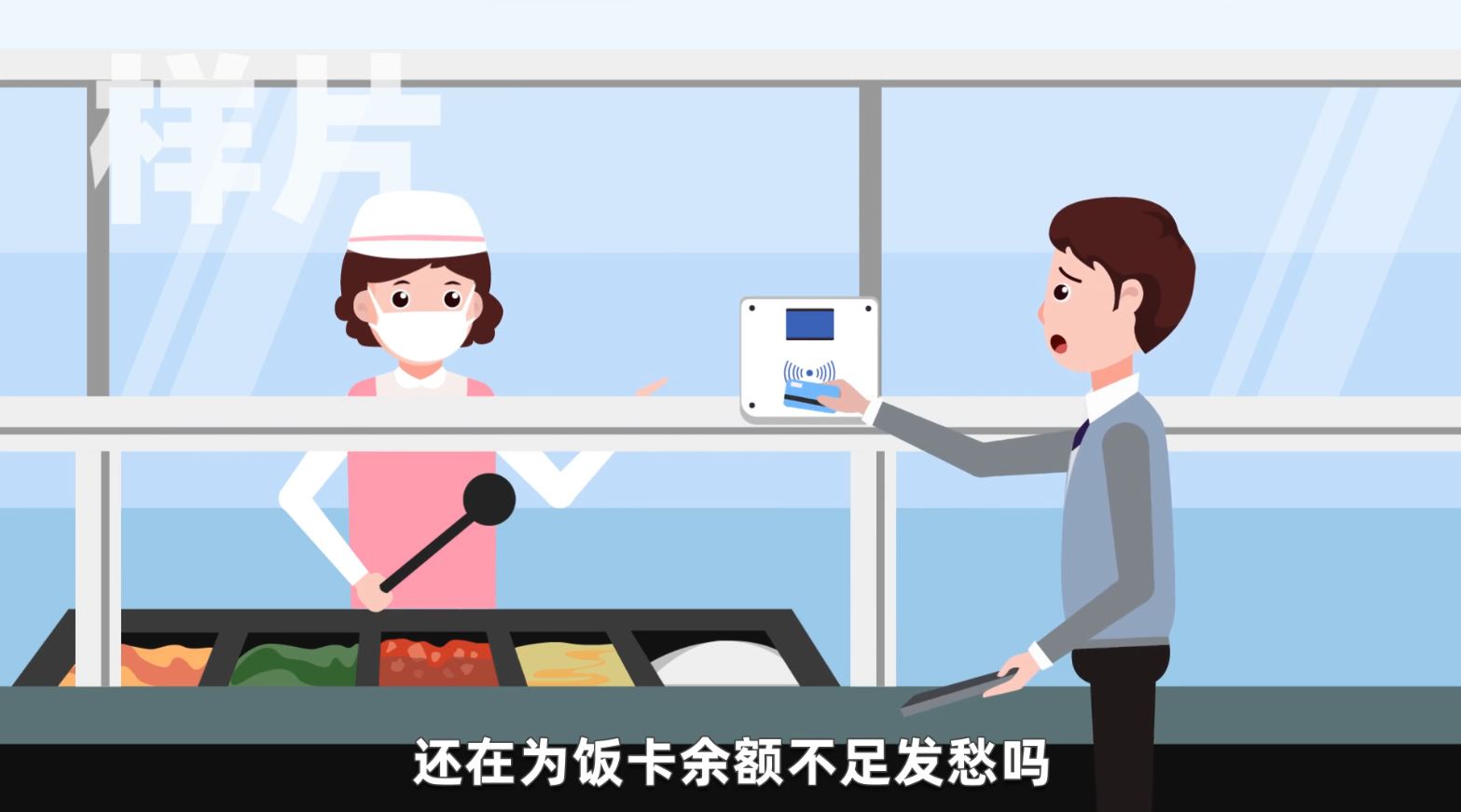 台词:每次充值饭卡都这么多人,真容易增加聚集风险,而且我们财务人员逐次输入信息慢,单位餐补现金充值不能马上发,消费充值无法随时查询统计,对账核销真烦人