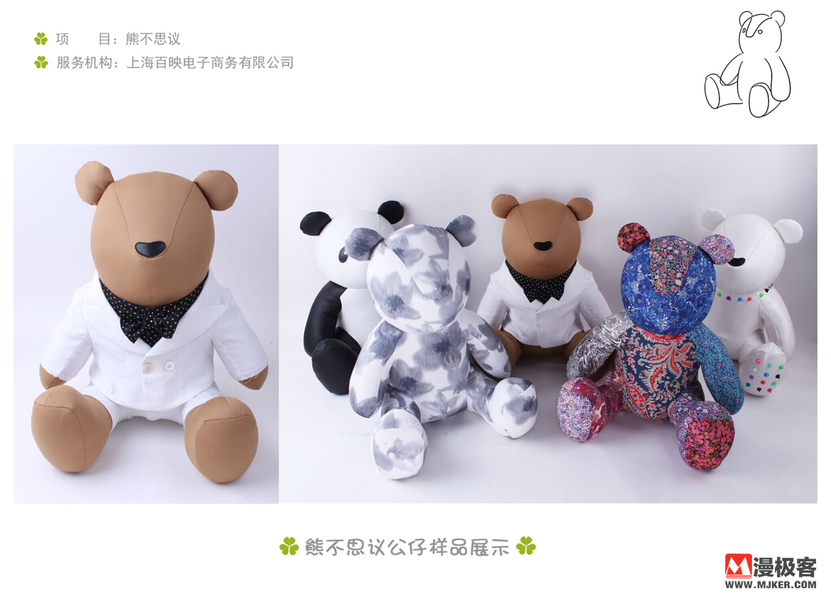 熊不思议是一个基于微信的定制公仔电商品牌,隶属于上海百映电子商务有限公司。